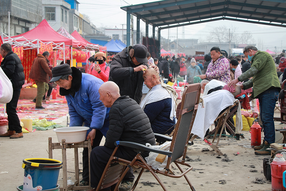 2022、01、25拍摄于山亭区徐庄大集。农历年前剃头是传统民俗中的吉祥含义。是老百姓辞旧迎新的民间传统,也是一种最朴实的过年民俗。意为“从头开始”。这一民俗,寄托着人们对新一年的希望和期待。
