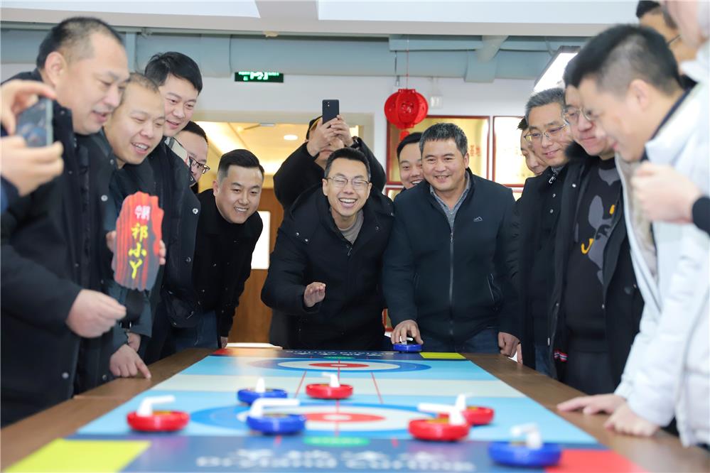 在山东青岛金海牛能源环境产业园举办了“乐享新春 Dou欢乐”文体系列赛活动,金海牛工会联合会组织园区企业职工积极参与旱地冰壶、3v3篮球赛、乒乓球和够级等比赛,让员工在活动中健身减压,近距离感受冬奥竞技项目的乐趣和魅力。