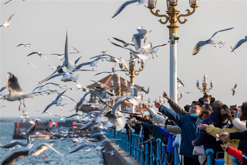 栈桥鸥舞游人乐