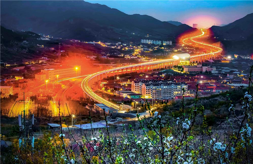 拍摄于崂山11号地铁线,4月春花盛开,地铁穿梭而过。