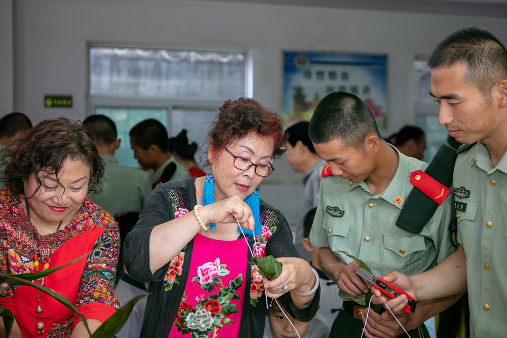 2019年6月6日 端午佳节 山东省滕州市爱心人士前往驻滕武警慰问,手把手教战士们包粽子。