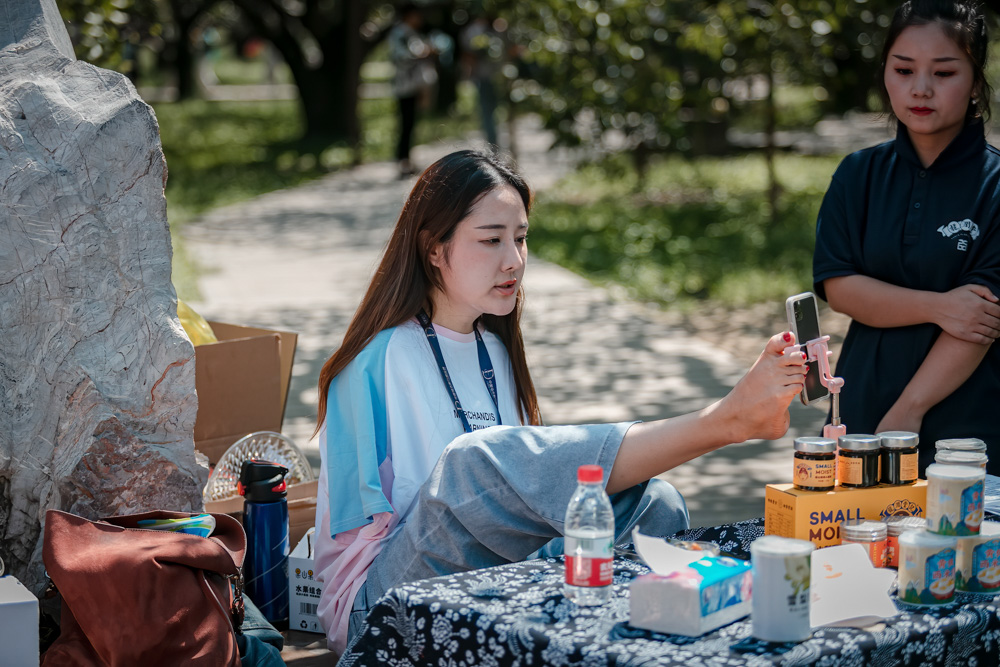 2020年9月19日, 安徽省砀山县网红无臂主播给粉丝介绍酥梨系列产品。